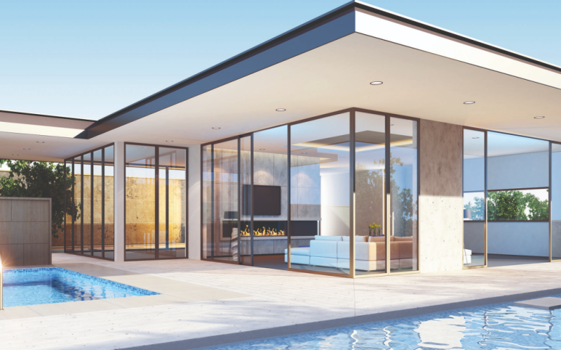 Système coulissant multirails de 87 mm avec barrière thermique. esthétique Des lignes droites.